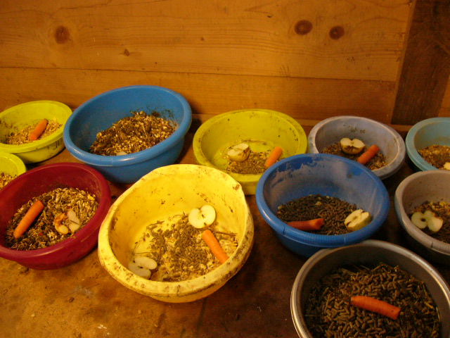 Hier wird gerade unsere alte Kenny energetisch-osteopathisch behandelt. Das Futter ist vorbereitet. Menge und Zusammensetzung wird mit dem Besitzer besprochen.