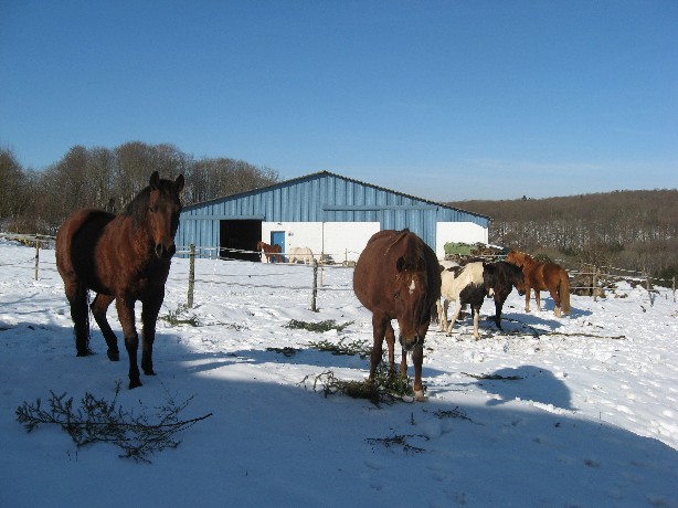 Den grossen luftigen Stall bewohnen vor allem im Winter die Pensionäre sowie unsere eigenen Pferde, ein Teil ist als Laufstall eingerichtet. Die geräumigen, halbhohen Boxen bieten Schutz und Rückzugsmöglichkeit und sorgen trotzdem für genügend Sozialkontakte. Für trächtige Stuten steht eine Abfohlboxe bereit.