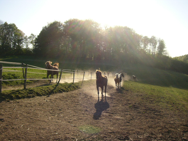 Auch Pferde würden gerne mal körperlich und seelisch regenerieren. Grund genug, dem vierbeinigen Liebling einen Erholungsurlaub auf unseren gepflegten Weiden zu gönnen. Das Land ist fast eben mit teils sanfter Hanglage, Schatten spendenden Bäumen, etwas Wald und einer vielfältigen Gräser- und Kräutervegetation. Häufig weht auch ein leichtes Lüftchen, welches im Sommer die lästigen Insekten vertreibt.